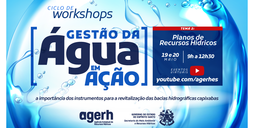 Instrumentos de gestão de recursos hídricos, previstos nas Políticas Estadual e Nacional de Recursos Hídricos, os Planos de Bacias Hidrográficas serão o próximo assunto a ser debatido no Ciclo de Workshops “Gestão da Água em Ação”, promovido pela Agência Estadual de Recursos Hídricos do Estado do Espírito Santo (Agerh).