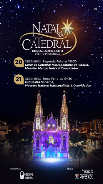 É com uma linda mensagem de fé e esperança de dias melhores que a Secretaria Municipal de Cultura (Semc), em parceira com a Catedral Metropolitana de Vitória, na capital do Espírito Santo, inicia, na próxima segunda, o evento “Natal na Catedral – cores, luzes & som”.