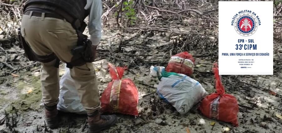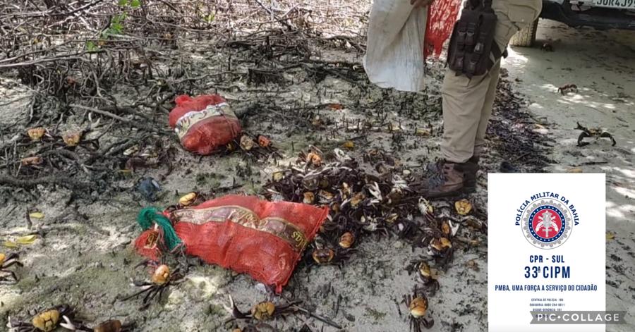 Equipes da 33ª Companhia Independente da Polícia Militar (CIPM/Valença) devolveram 600 caranguejos para o habitat natural, no domingo (6), no povoado de Garapuá, pertencente a cidade de Cairu, região baixo sul da Bahia.