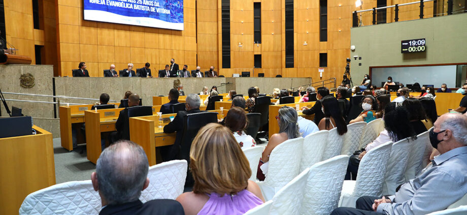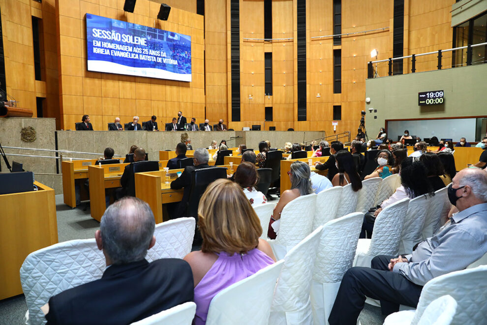 Aconteceu nesta sexta-feira (25), no Plenário Dirceu Cardoso, solenidade em homenagem aos 25 anos da Igreja Evangélica Batista de Vitória (IEBV). Criada em 1996, a instituição preocupa-se em apresentar um modelo alternativo de ministério, contextualizado e sensível às mudanças e avanços da sociedade.