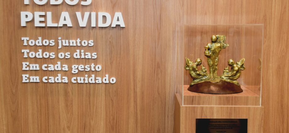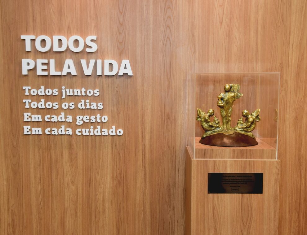 Obra de arte “Todos pela vida”, feita pelo escultor Penithência, eterniza o reconhecimento e passa a fazer parte da recepção do Hospital Unimed