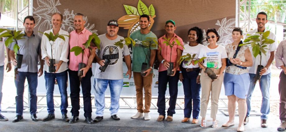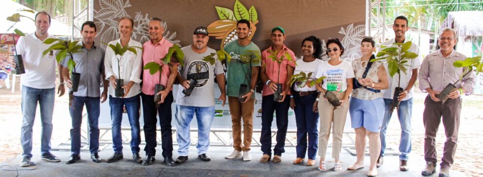 Na oportunidade também foram entregues mudas de cacau para o primeiro lote de produtores contemplados no terceiro edital do Programa Municipal de Revitalização da Cultura do Cacau.
