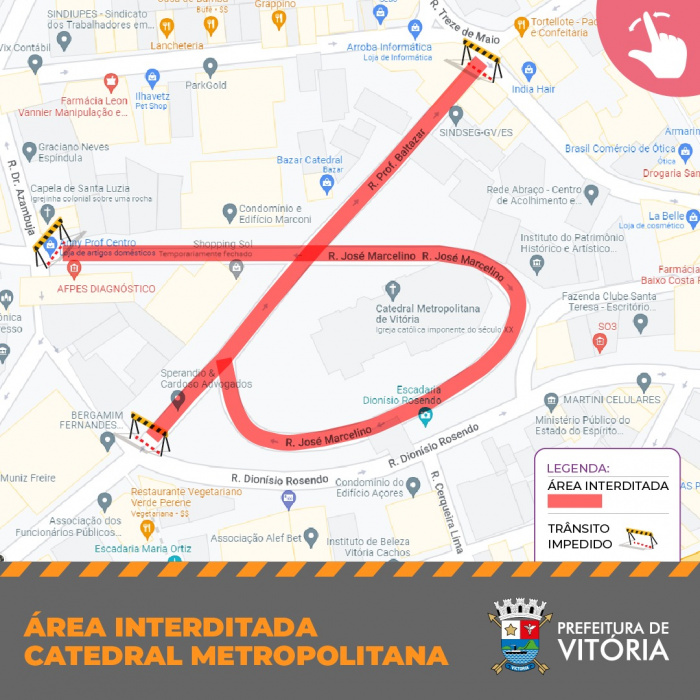 Serão 20 agentes de Trânsito, sendo 10 operacionais e 10 batedores, e mais 13 agentes de apoio. Eles vão atuar na Catedral, no Palácio Anchieta, na avenida General Osório e na avenida República.