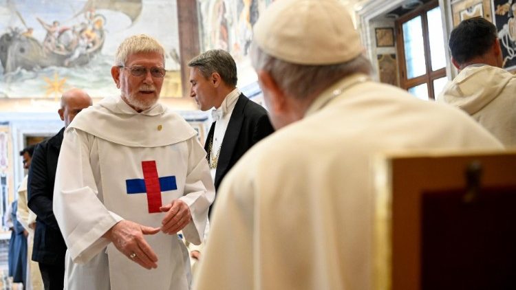 O Papa finalizou seu breve discurso agradecendo pelo trabalho da Ordem e os encorajou a prossegui-lo, também colaborando com outras instituições, eclesiais ou não, que compartilham de seu nobre propósito. Mas, por favor, disse, sem perder sua especificidade, sem “diluir” o carisma.