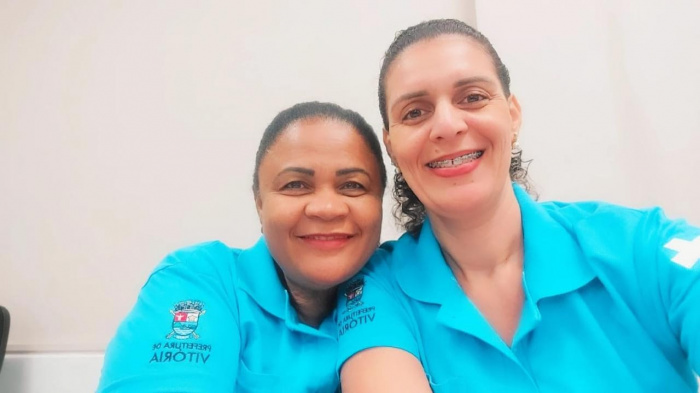Outra dupla de mãe e filha que compartilham a mesma profissão, na Semus, são a Ireni Batista Rosa, 67 anos, e a Thais Batista da Luz Rosa, 42 anos. As duas trabalham como enfermeiras em unidades de saúde de Vitória.