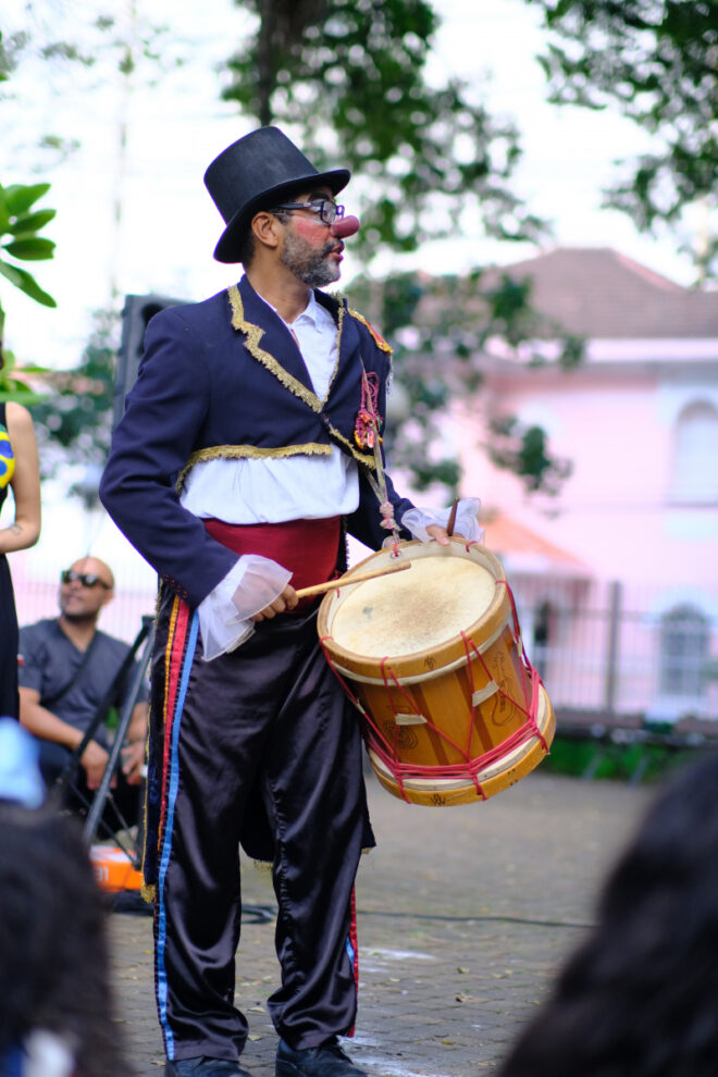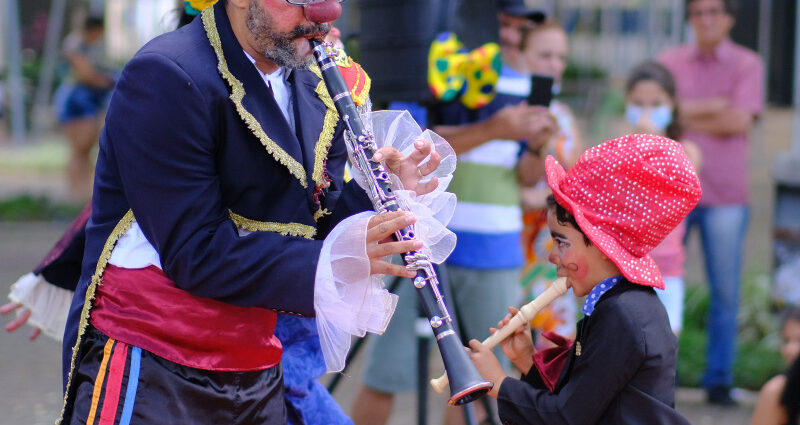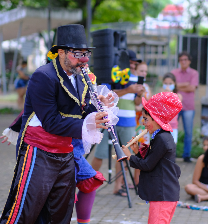 O cortejo circense “Fuscalhaços” é uma criação coletiva do Grupo Árvore Casa das Artes, em parceria com artistas circenses do estado.