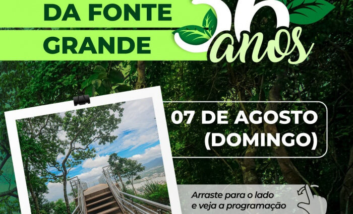 Uma programação ambiental e cultural para celebrar os 36 anos de história do Fonte Grande. Quem for ao Parque, no domingo (07), poderá participar de atividades que incluem exercício físico, caminhadas por trilhas de acesso a mirantes, oficina de observação de aves e o lançamento de uma Mostra de fotografias da biodiversidade e paisagem do Parque pelas lentes dos visitantes.