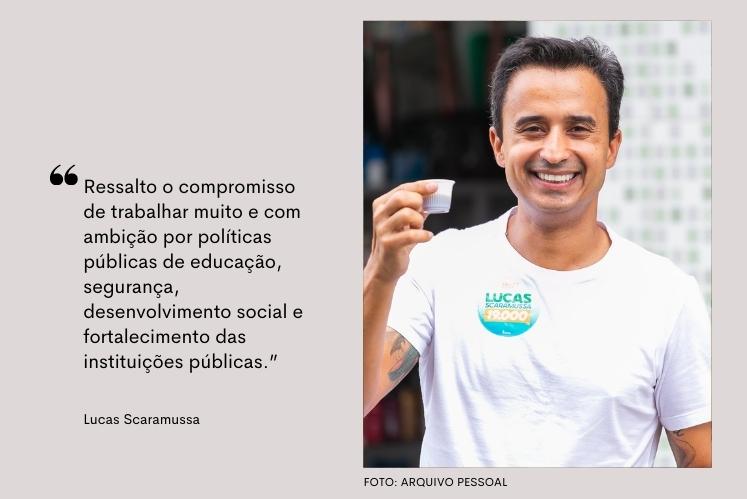 Eleito com 26.720 votos, Lucas Scaramussa, de 43 anos, é natural de Linhares. Advogado e professor universitário, foi secretário municipal de Meio Ambiente de Linhares em duas oportunidades. É da experiência dentro de suas carreiras profissionais que veio a motivação para entrar na política. “O envolvimento direto com as pessoas e o reflexo das leis na vida delas, o que experimentei seja como professor do ensino superior, seja como advogado”, afirma.