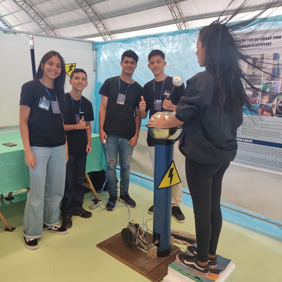Estudantes da Escola Estadual de Ensino Fundamental e Médio (EEEFM) Leopoldino Rocha, localizada no município de Itapemirim, região sul do Espírito Santo, desenvolveram um equipamento eletrostático que consegue demonstrar a transferência de elétrons de um corpo para outro: o gerador Van Graaf, que foi construído com materiais reciclados.