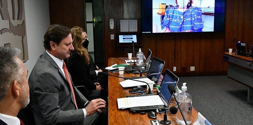 Acir Gurgacz (à mesa, ao centro) e Zenaide Maia (no telão) em outra audiência pública sobre o projeto, em junho | Foto: Geraldo Magela/Agência Senado