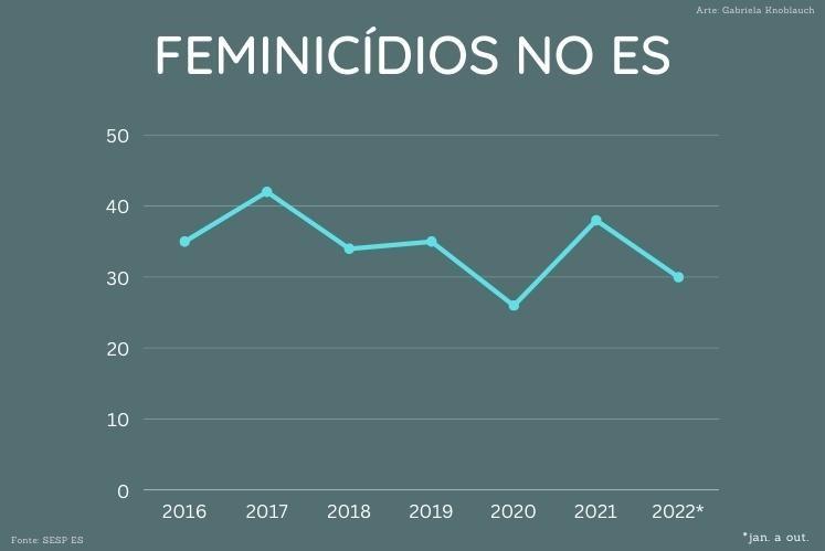 Na Semana Estadual de Prevenção e Combate ao Feminicídio no estado, há pouco a comemorar e muito a resolver. De acordo com o Anuário Brasileiro da Segurança Pública 2022, o Espírito Santo registrou 26 feminicídios em 2020 e 38 em 2021. Um aumento de 46%. Este ano, até agora, 30 crimes do tipo foram confirmados pelo Observatório da Segurança Pública, da Secretaria de Segurança Pública e Defesa Social (Sesp).