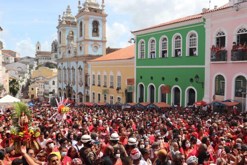 A emoção bateu forte na manhã deste 04 de dezembro no Pelourinho. A última vez em que a multidão de devotos formou o tapete vermelho e branco tradicional do Dia de Santa Bárbara havia sido em 2019, antes da pandemia. Após ter acontecido de forma restrita nos últimos dois anos, a festa da padroeira dos bombeiros e dos mercados retomou a tradição neste domingo, e a Missa Campal no largo acalentou os milhares de corações que se encontravam ali saudosos deste momento, e também gratos à Rainha dos raios pela proteção durante os tempos tempestuosos vividos.