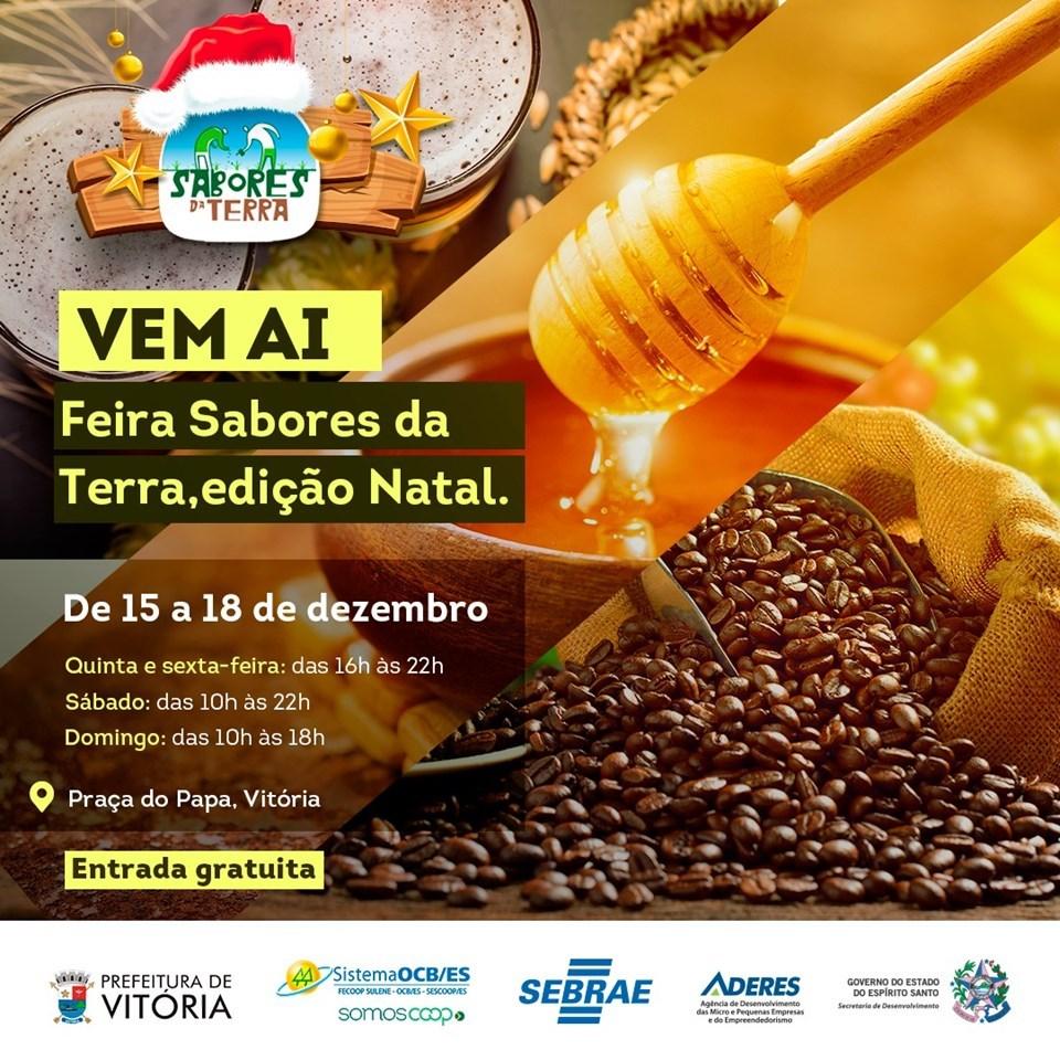 A Feria Sabores da Terra – Edição Natal, começa nesta quinta-feira (15) e segue até o próximo domingo (18), na Praça do Papa, em Vitória. Com entrada gratuita, a feira vai reunir os sabores e belezas do Espírito Santo em um só lugar, para isso, mais de 700 empreendedores estão sendo beneficiados, com a ação desenvolvida pela Agência de Desenvolvimento das Micro e Pequenas Empresas e do Empreendedorismo do Estado (Aderes), em parceria com o Serviço de Apoio à Micro e Pequena Empresa (Sebrae-ES), para atender os pequenos negócios.