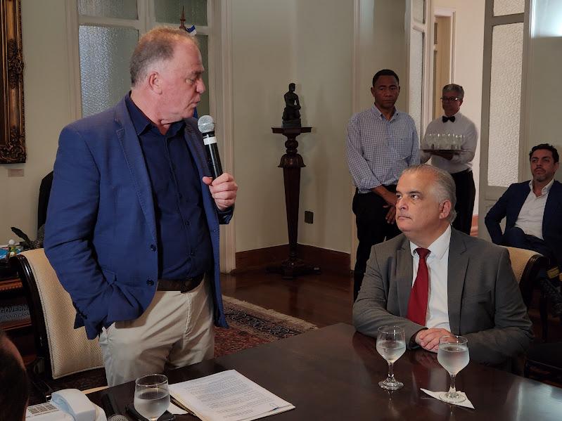 O governador do Espírito Santo, Renato Casagrande, e o ministro dos Portos e Aeroportos, Márcio França, participaram da assinatura do memorando de entendimento entre VLI e Porto Vitória, para expansão do terminal portuário, nesta segunda-feira (13), no Palácio Anchieta.
