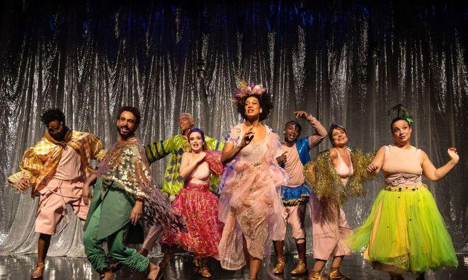 O elenco multirracial é composto por oito atores e atrizes (Paulo Verlings, Aline Carrocino, Carolina Pismel, Ester Dias, Jorge Florêncio, Nando Brandão, Patricia Elizardo e Udylê Procópio) e quatro músicos: Guilherme de Menezes (guitarrista e violonista), João Marcos Freitas (baterista), Leandro Vasques (baixista) e Raoní da Silva (percussionista).
