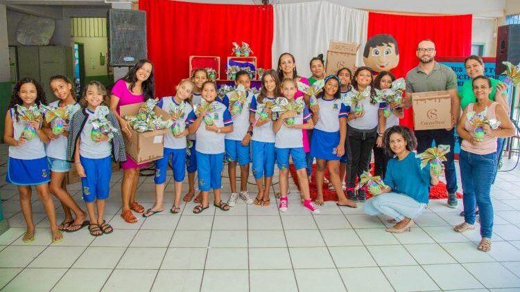 A escola recebeu a doação de 1,2 mil ovos de chocolate da empresa Cacau Show, que tem uma fábrica sediada no bairro. Os profissionais de Educação que atuam na unidade de ensino também foram presenteados com os ovos de páscoa.