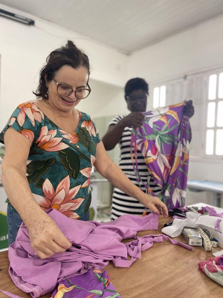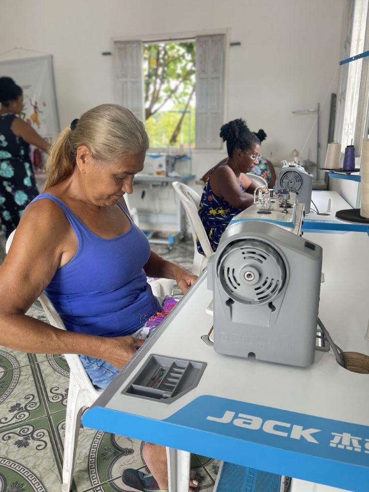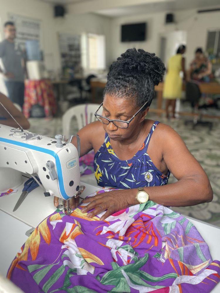 “Estamos muito felizes com o curso e com as novas máquinas! Antes as nossas máquinas eram manuais, mais lentas, tínhamos até dificuldade para finalizar algumas peças. Mas os equipamentos novos são muito mais potentes e rápidos. Agora a nossa força de trabalho aumentou, estamos mais produtivas. E graças a Deus nos tornamos costureiras profissionais. A gente já sabia costurar, mas precisava dessa capacitação, dessa atualização. Já temos muitas peças prontas produzidas pelas nossas mãos!”, comemora Maria Aparecida Cesário, presidente da Associação de Moradores do Morro da Arara e líder do projeto.