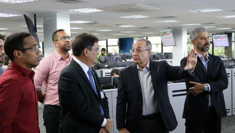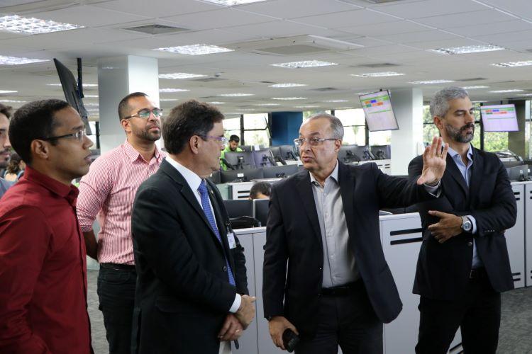 Durante a visita, o secretário conheceu o Centro de Operação Integrada (COI), terceira maior do país, de onde são controladas as quase 400 subestações do estado, além de todas as novas ligações e equipes de campo.