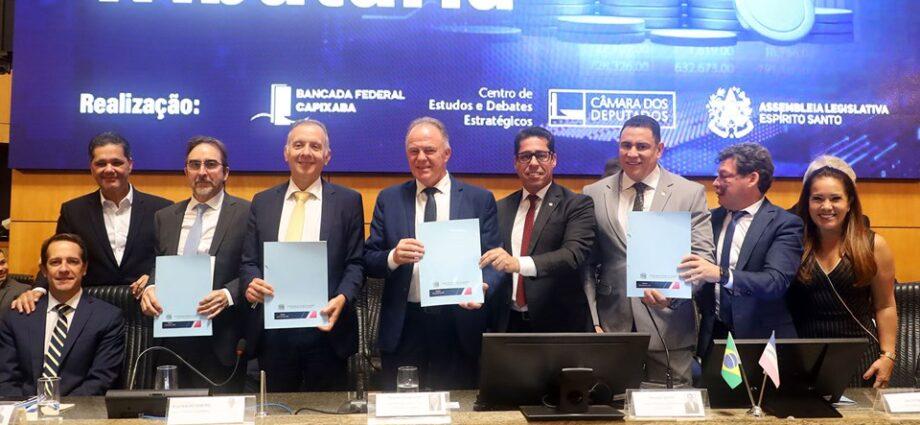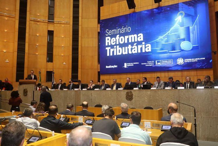 O governador do Estado, Renato Casagrande, participou, nesta segunda-feira (19), do seminário sobre a Reforma Tributária, realizada da Assembleia Legislativa do Espírito Santo (Ales). Durante o evento, foram apresentadas as propostas do Estado para a reforma. O documento foi entregue ao secretário extraordinário da Reforma Tributária do Ministério da Fazenda, Bernard Appy, e aos deputados federais Aguinaldo Ribeiro (PB) e Reginaldo Lopes (MG), respectivamente, relator e coordenador do Grupo de Trabalho na Câmara dos Deputados sobre o tema.