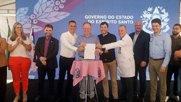 O governador do Espírito Santo, Renato Casagrande, assinou, na manhã desta quarta-feira (26), a Ordem de Serviço para obras de ampliação da estrutura operacional e clínica cirúrgica materno-infantil no Hospital Infantil e Maternidade Alzir Bernardino Alves (Himaba), em Vila Velha. Atualmente, a unidade conta com 228 leitos e após a ampliação passará a ter 410. O hospital é gerenciado pelo Instituto Acqua em parceria com a Secretaria da Saúde (Sesa).