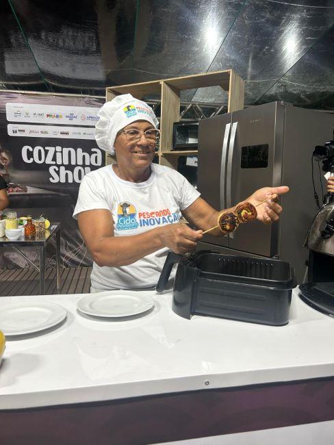 A Cozinha Show foi, oficialmente, aberta ao público no sábado (7) pelos chefs Cida Pescadora e Alex Gregory. Convidada pela Bahia Pesca, Cida apresentou, no sábado, seu famoso medalhão de tilápia, sucesso de crítica e público em todos os lugares onde apresenta. No domingo (8), ela voltou ao palco do espaço para apresentar a receita de uma tilápia espalmada, acompanhada de maxixe recheado com peixe gratinado, que encantou a plateia.