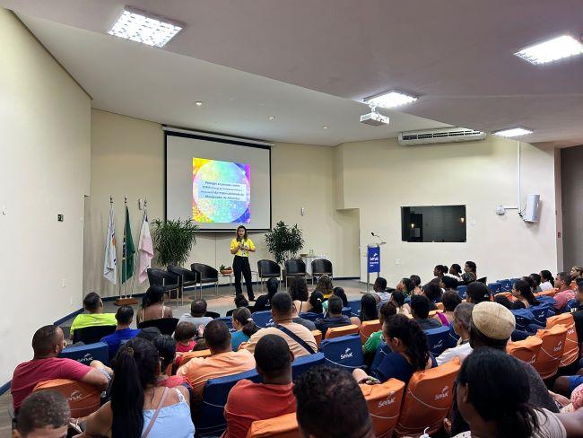 A noite desta terça-feira (30), começou para lá de animada no Auditório do Senac, em Vitória, capital do Espírito Santo. Em ritmo de Carnaval, 200 vendedores ambulantes tiveram a oportunidade de participar do treinamento: “Atendimento e Boas Práticas de Higiene”, realizado pela Instrutora de Educação Profissional do Senac-ES, Luciana Dalarmelina. A iniciativa é uma parceria entre o Senac-ES e o município de Vitória. Membros da Escola de Samba “Chegou o que faltava”, da comunidade de Goiabeiras, animaram o evento.